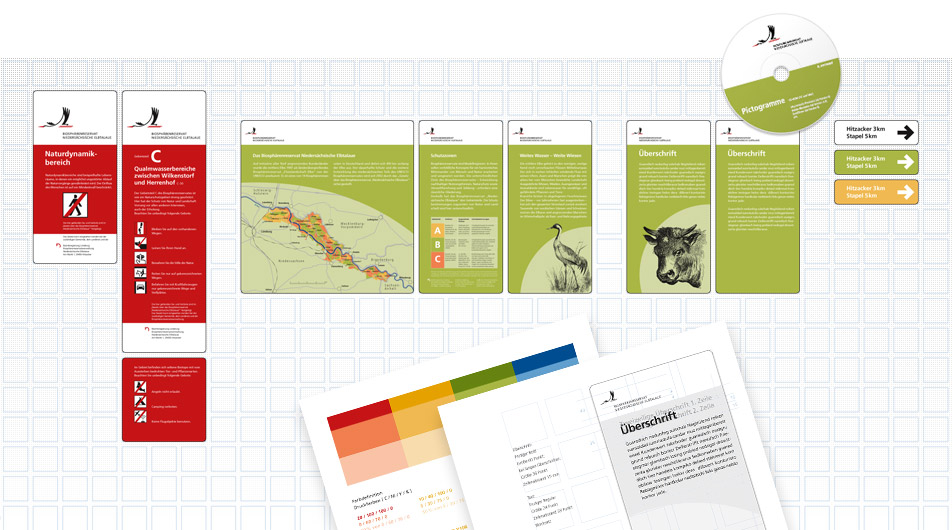Für die Marke »Biosphärenreservat Niedersächsische Elbtalaue« entwickelte ö_konzept eine einheitliche und starke Form, welche auch den ökologischen Aspekt der Region betont.