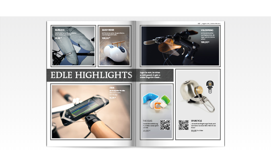Grundidee des Fahrradmagazins war es, mit einem optimierten redaktionellen und gestalterischen Aufwand ein individuelles Saisonmagazin für insgesamt 10 verschiedene, bundesweit angesiedelte Fahrradfachgeschäfte zu schaffen.