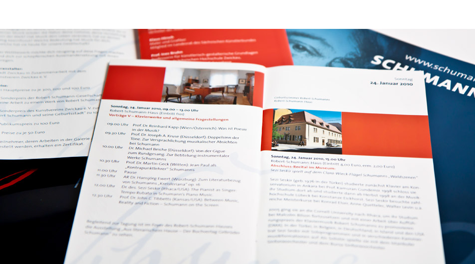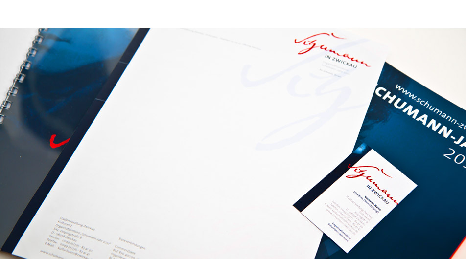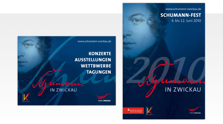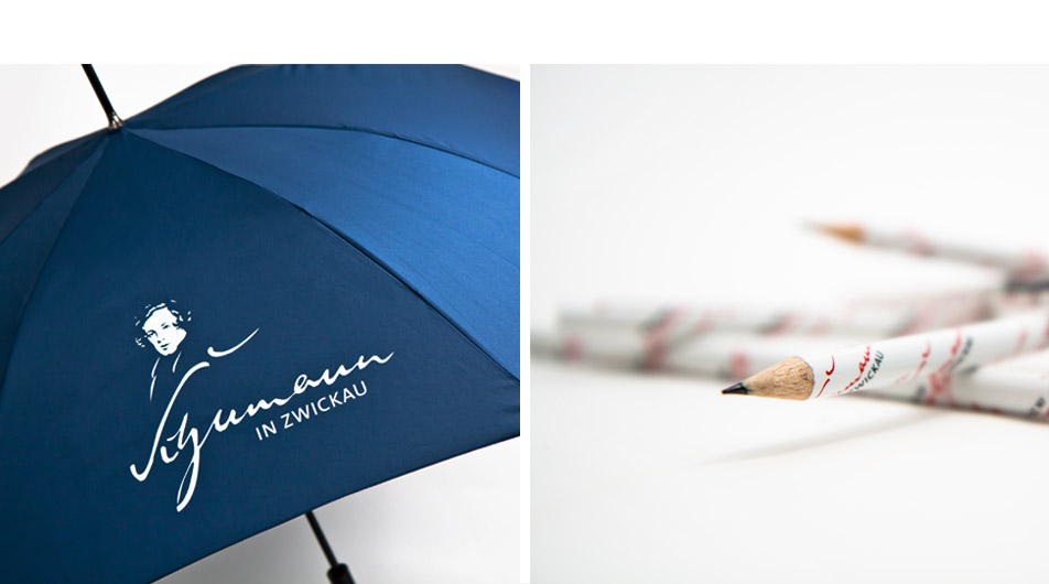 Unter Verwendung ausgewählter Standards des bisherigen Erscheinungsbildes (Schumann-Signatur und Porträt) und die Orientierung am aktuellen Corporate Design Zwickaus, waren bei der Überarbeitung eine höhere Prägnanz und breitere Modifizierbarkeit gestalterisches Anliegen.