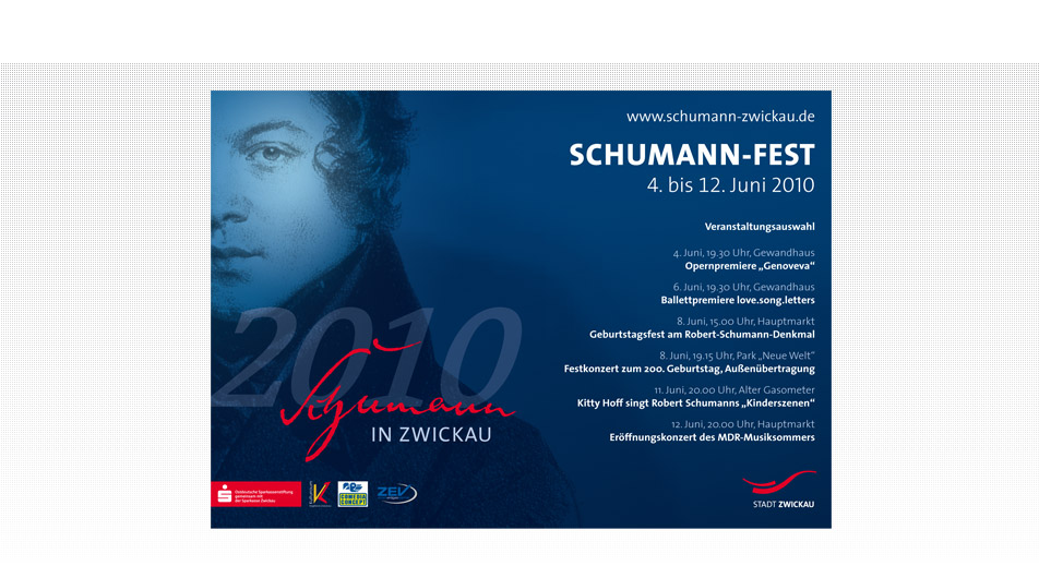 Anlässlich des 200. Geburtstages Robert Schumanns im Jahr 2010 wurde das Erscheinungsbild von 2006 überarbeitet und aktuellen Anforderungen angepasst. Das Redesign sollte über das Jubiläumsjahr hinaus künftig allen Veranstaltungen, Einrichtungen und Sachverhalten, die mit »Schumann in Zwickau« zu tun haben, einen einheitlichen Rahmen bieten.