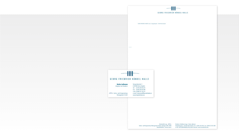 Mit dem Neubau der Georg-Friedrich-Händel-Halle entstand der größte Konzert- und Veranstaltungsbau der Stadt. Das Logo greift die beiden »H« des Namens auf, indem es diese als architektonisches Zitat nutzt zur Konstruktion der Hauptform.