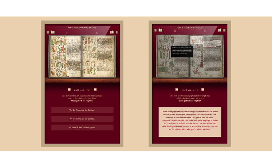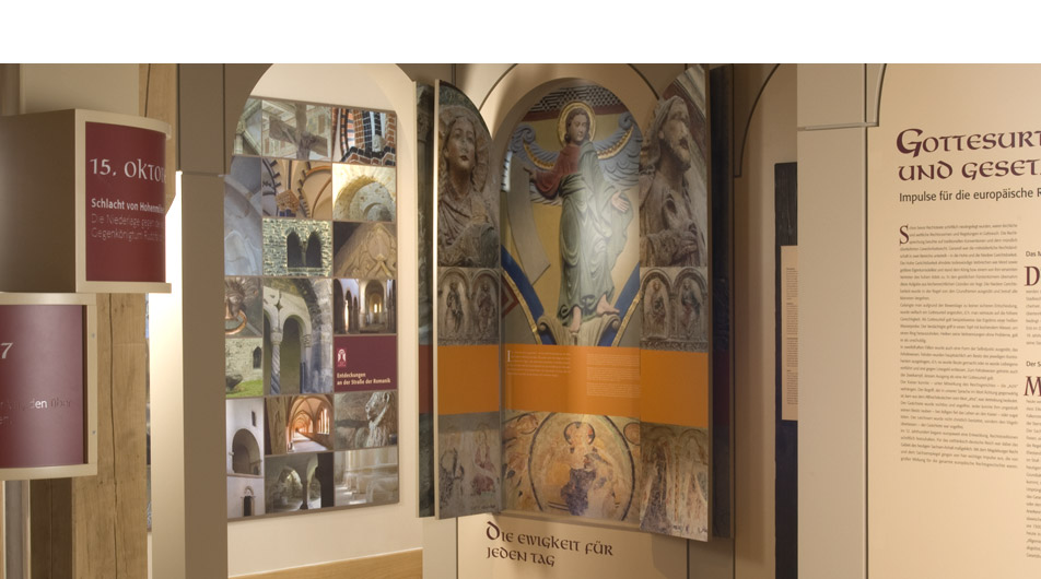 Für das »Haus der Romanik« am Domplatz in Magdeburg entwarf ö_konzept eine Ausstellung, welche Kinder und Erwachsene in die Geschichte Sachsen-Anhalts führt. Hier – im Zentrum der Straße der Romanik – kann Historie selbst erlebt werden – mit ihren Klängen und Gerüchen, mit Kirchenarchitektur und Burgenbau, mit der Schrift der damaligen Zeit und der Rechtssprechung nach dem bekannten »Sachsenspiegel«. Spielerisch, audiovisuell sowie interaktiv erhalten Besucher Einblick in die Epoche der Ottonenkaiser, welche für Mitteldeutschland prägend war.