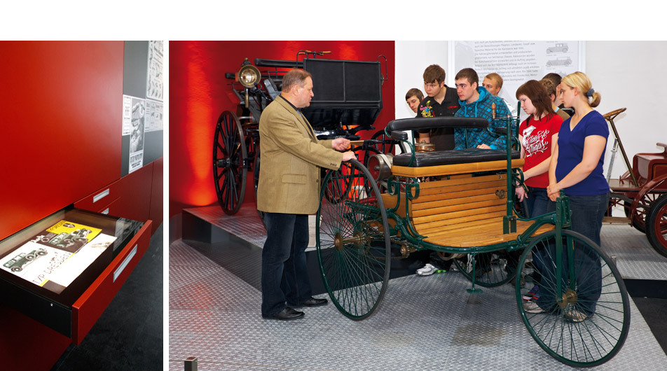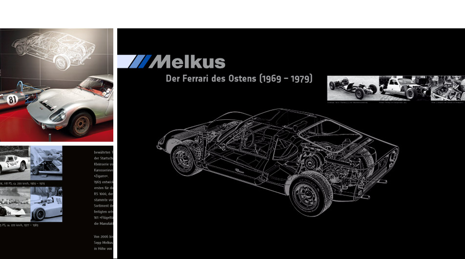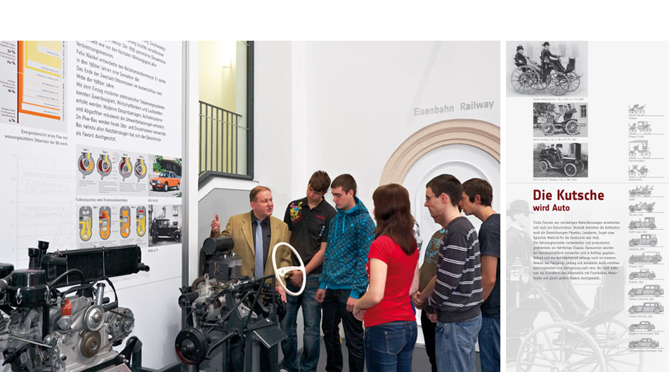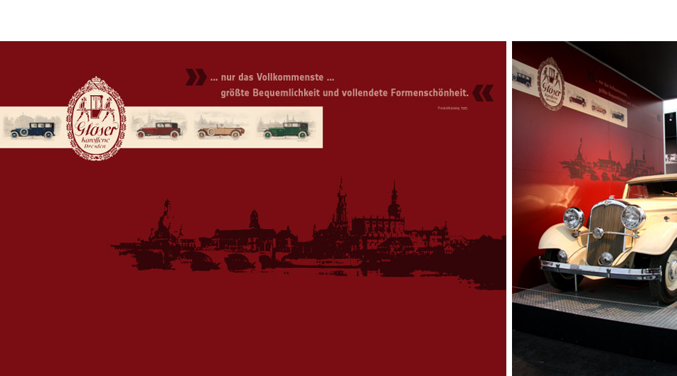 Im traditionsreichen Verkehrsmuseum Dresden gestaltete ö_konzept die Automobilfahrzeughalle, als Teilbereich der Ausstellungsabteilung »Straßenverkehr«, um. Ein abwechslungsreicher Rundgang führt durch die Zeugnisse sächsischer und ostdeutscher Automobilgeschichte. Zu sehen ist anhand zahlreicher Exponate, darunter 15 Fahrzeuge, die Pkw-Entwicklung in Sachsen und Thüringen von den Anfängen Ende des 19. Jahrhunderts bis hin zur Wendezeit 1989. Die großflächigen Wandgestaltungen im Lichthof des Museums vermitteln ein ansprechendes Zeitgeschehen und sorgen für eine stimmungsvolle Atmosphäre sowie einen erlebnisreichen Museumsbesuch.