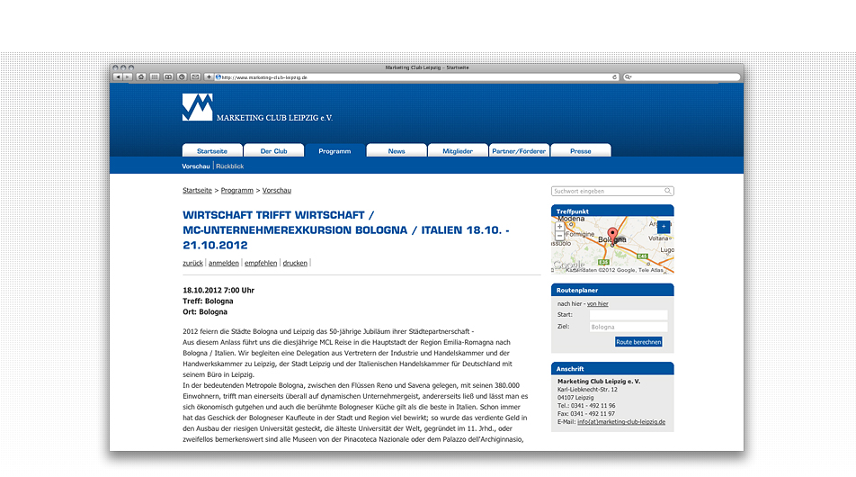 Neugestaltung der Webpräsenz auf Basis des CMS Contenido. Die inhaltliche Pflege der Webpräsenz erfolgt vollständig über den Auftraggeber. Besonderen Wert wurde auf die Programm-Übersicht gelegt. Diese wurden zusätzlich mit einer Bildergalerie und einem Anfahrtsplan versehen. Die Archivierung erfolgt automatisch.