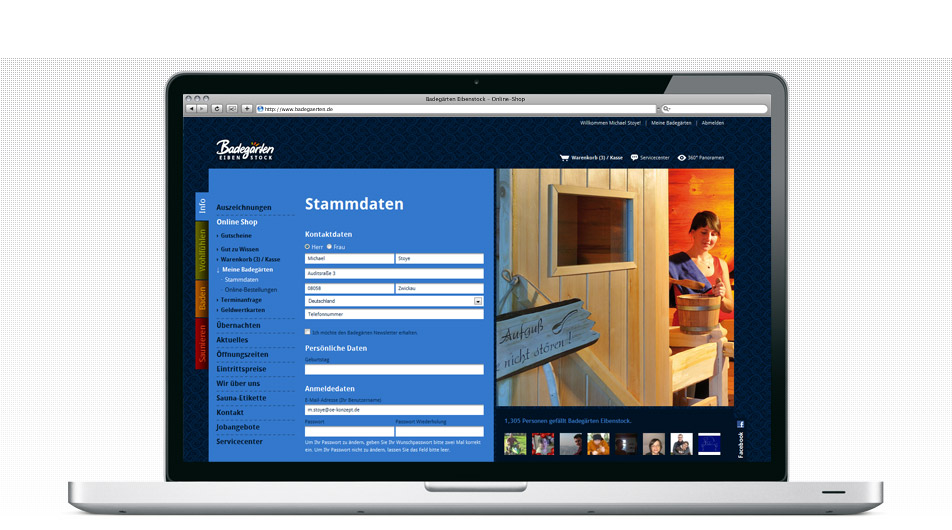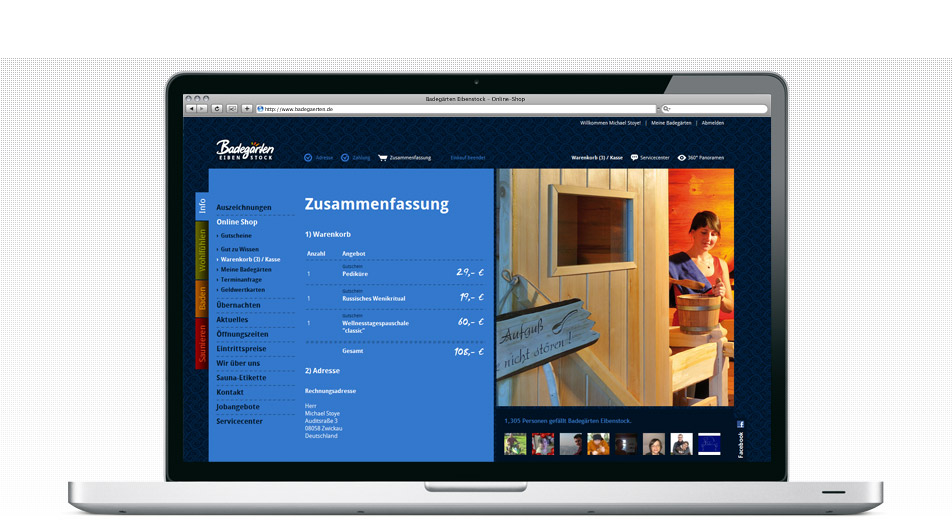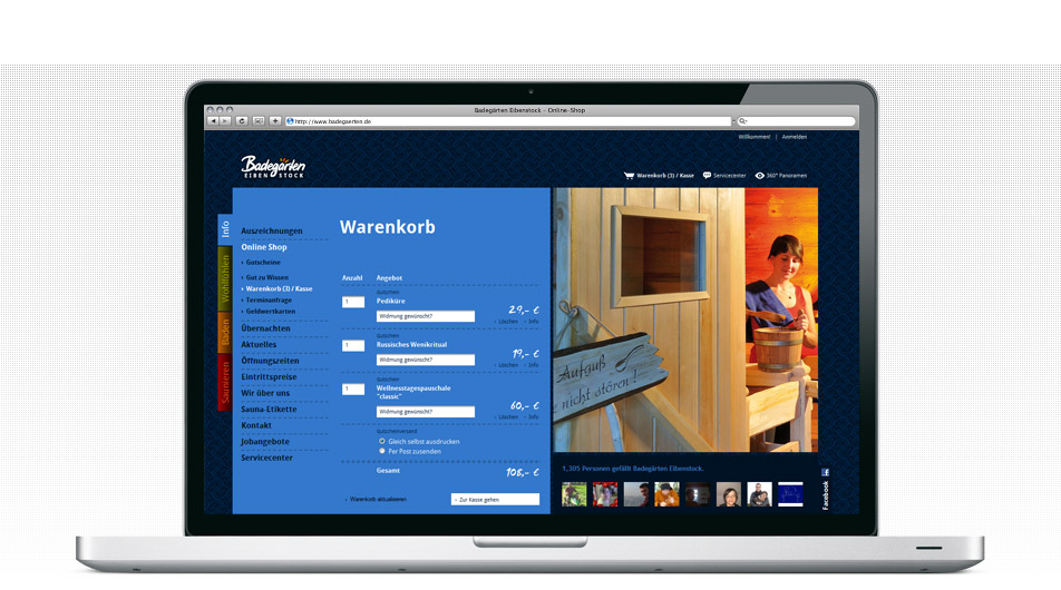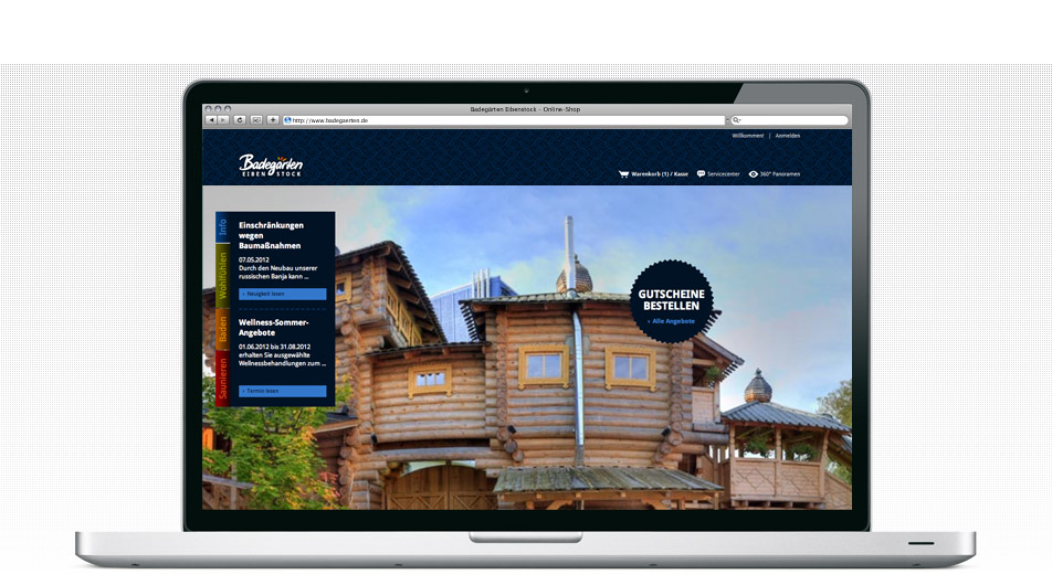 Zielstellung war es, den bis dato getrennt laufenden Gutschein-Shop der Badegärten Eibenstock direkt in die Internetseite zu integrieren und um ein Nutzerkonto zu erweitern. Zudem sollte eine direkte Anbindung an die  Spa-Management-Software stattfinden.
