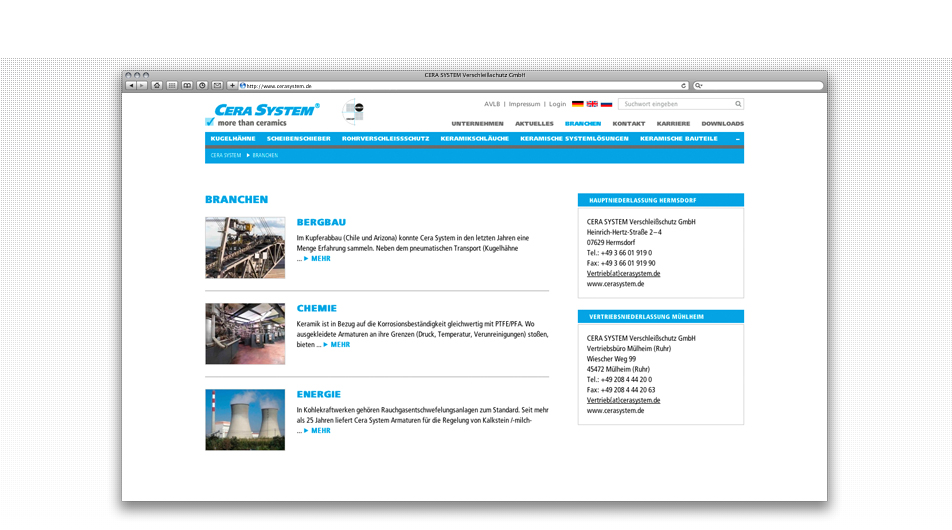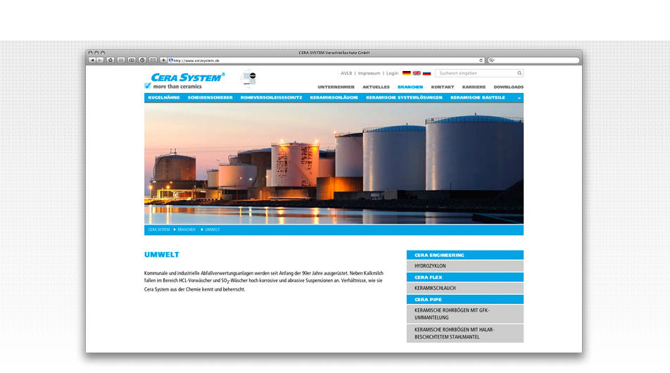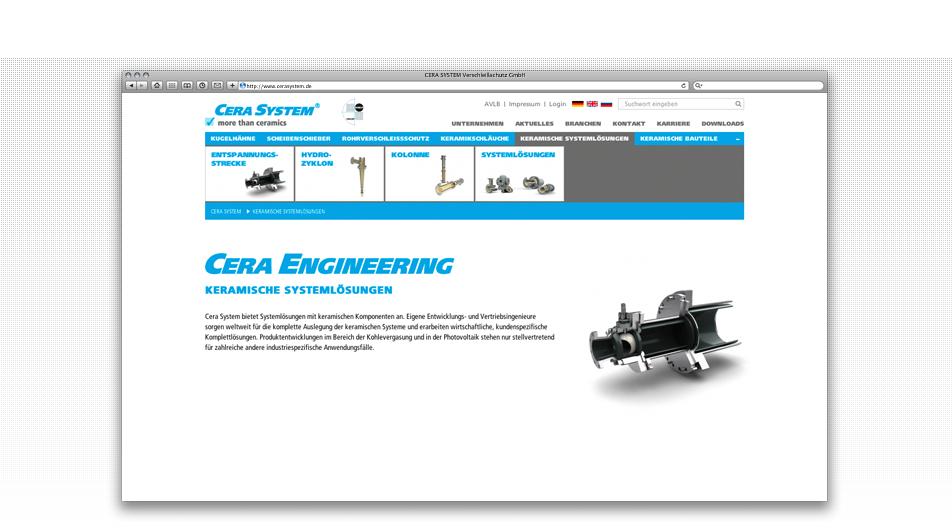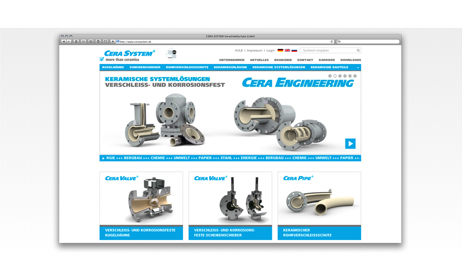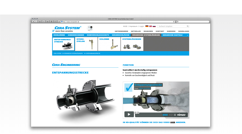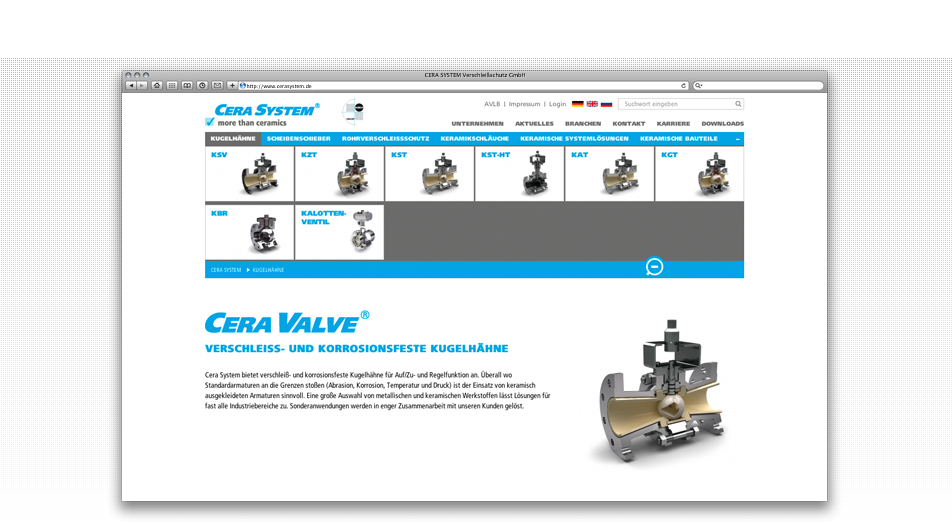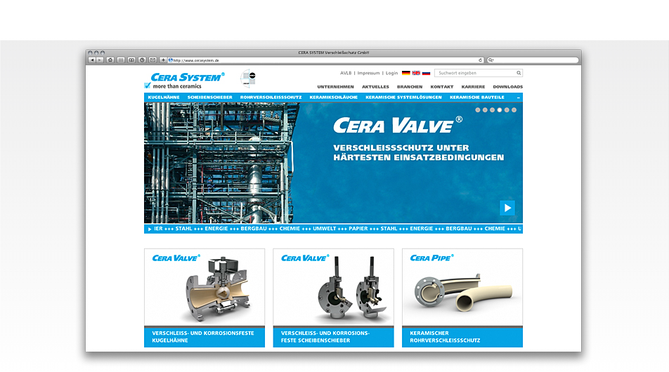 Relaunch der Website: Anpassung an das von uns neu entwickelte Corporate Design, Usability-Optimierung sowie Entwicklung von 3-D-Grafiken für eine einheitliche Produktpräsentation; mehrsprachige Ausgabe.