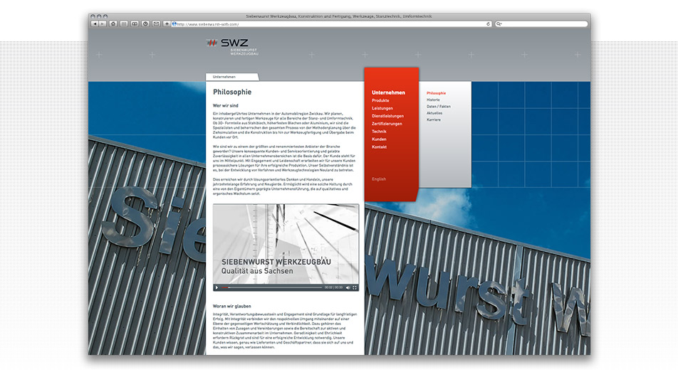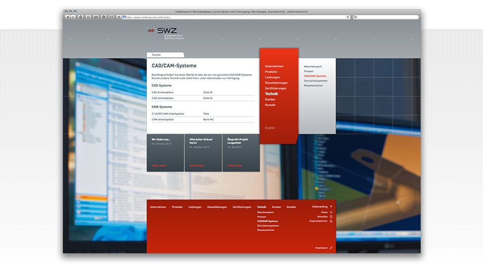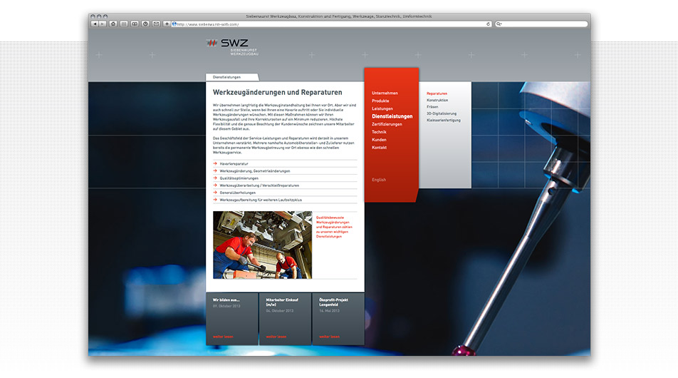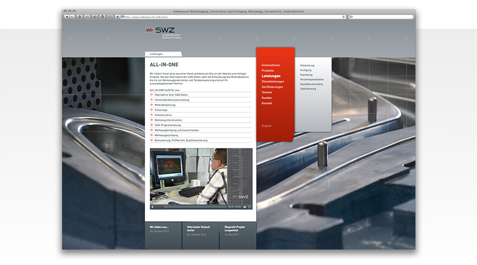 Für den Werkzeugbauer Siebenwurst galt es eine Website zu entwickeln, welche das technologische Know-How des Unternehmens im Internet widerspiegelt. Gestaltungsgrundlagen gaben dabei das zunächst entwickelte Corporate Design sowie ein neuer Imageprospekt vor.