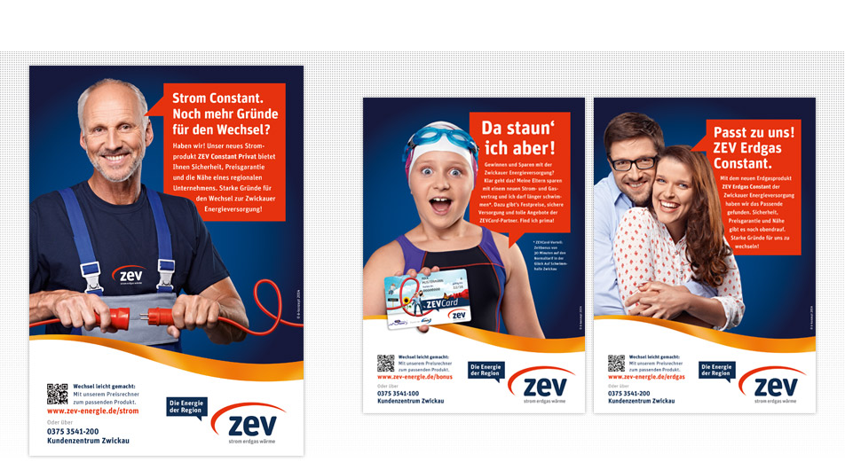 Die Zwickauer Energieversorgung beauftragte ö_konzept mit der kompletten Überarbeitung ihres Erscheinungsbildes. Damit soll die Markenwahrnehmung und Profilierung als regionaler Energiedienstleister geschärft werden. Im Rahmen dieser Aufgabe wurde das bisherige Firmenzeichen zeitgemäßer gestaltet und das Farbklima an die Assoziationen im Energiesektor angepasst. Mit dem neuen Corporate Design kann das Unternehmen in der Vielzahl ihrer Kommunikationsanwendungen auf ein einheitliches System mit hohem Wiedererkennungswert zurückgreifen. Parallel zur Erarbeitung des Corporate Design plante ö_konzept eine Marken-Produktkampagne. Diese wirbt über das städtische Kerngebiet hinaus mit konkreten Produkten und Vorteilen. Mit einer modernen und authentischen Bildsprache werden die Interessenten direkt angesprochen.