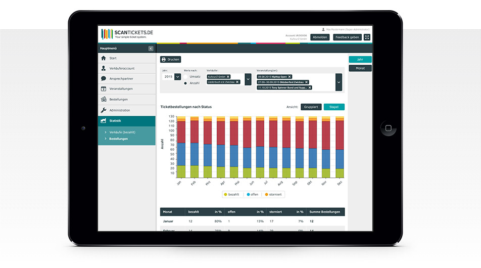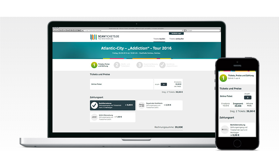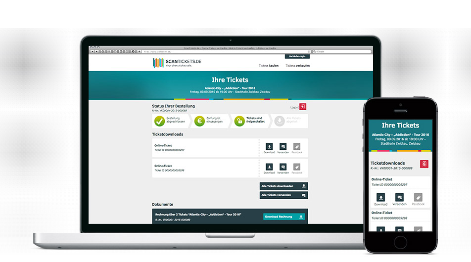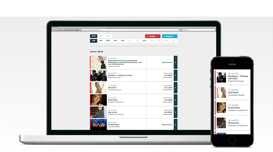 Das Online-Ticket-System bietet Veranstaltern die Möglichkeit, Tickets direkt an den Besucher zu verkaufen. Dabei stellt es alle benötigten Funktionen vom Anlegen eigener Veranstaltungen, über den Ticketvertrieb, bis hin zum Einlassmanagement zur Verfügung. Der komplette Prozess sollte im Rahmen eines Relaunch von Grund auf neu konzipiert und entwickelt werden. Im Fokus stand dabei vor allem das möglichst einfache und schnelle Ticketing für die späteren Ticketkäufer sowie ein hoher Automatisierungsgrad.