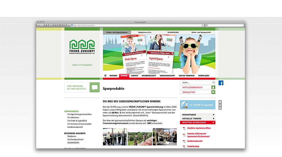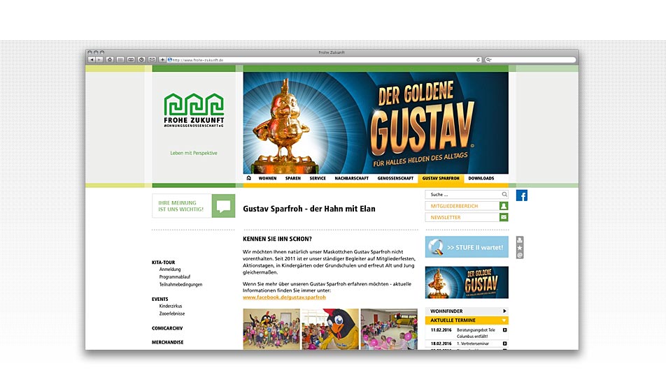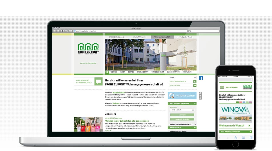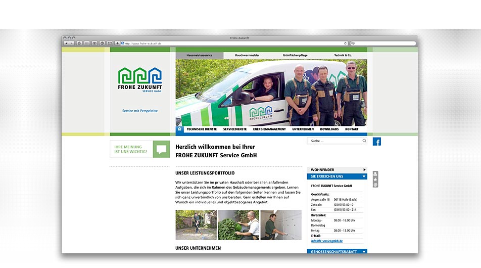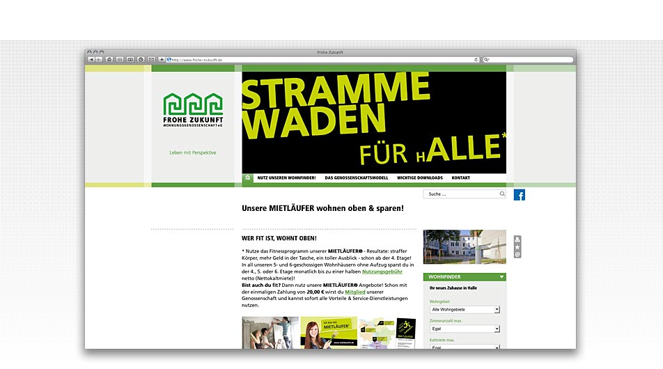 Die Wohnungsgenossenschaft FROHE ZUKUNFT e.G. – einer der größten Vermieter in der Händelstadt Halle – wünschte einen Relaunch des bestehenden Internetauftrittes. Durch breitflächige Umgestaltungen und strukturelle Überarbeitungen galt es eine informative, vertrauensstiftende und interessante Website zu kreieren. Darüber hinaus war die effektive Einbindung eines automatisierten Newsletters intendiert und Hilfestellung im Bereich Suchmaschinenoptimierung gewünscht.