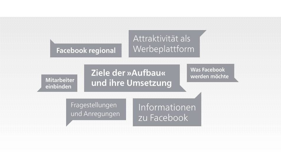 Um den Mitarbeitern dieses neue Instrument vorzustellen, wurden knapp 50 Personen in zwei Workshops mit dem Engagement der »Aufbau« auf Facebook vertraut gemacht. Dabei galt es insbesondere die Ziele und Möglichkeiten des Unternehmens durch eine Facebook-Präsenz zu erörtern, aber auch mögliche Risiken und Gefahren aufzuzeigen.