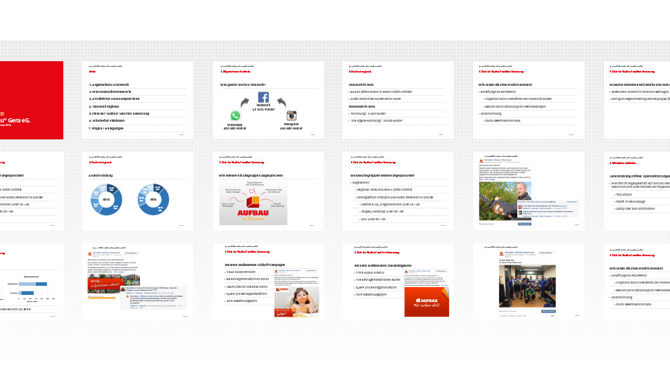 Die Wohnungsbaugenossenschaft »Aufbau« Gera eG ist als Großvermieter in Gera und Jena tätig. Sie bietet Wohnraum für verschiedene Zielgruppen und Altersklassen. Im Dezember 2015 starteten wir die Facebook-Präsenz mit dem Ziel, einen Online-Kanal für die Kommunikation mit den Mietern zu etablieren und neue Mieter für das Unternehmen zu gewinnen.