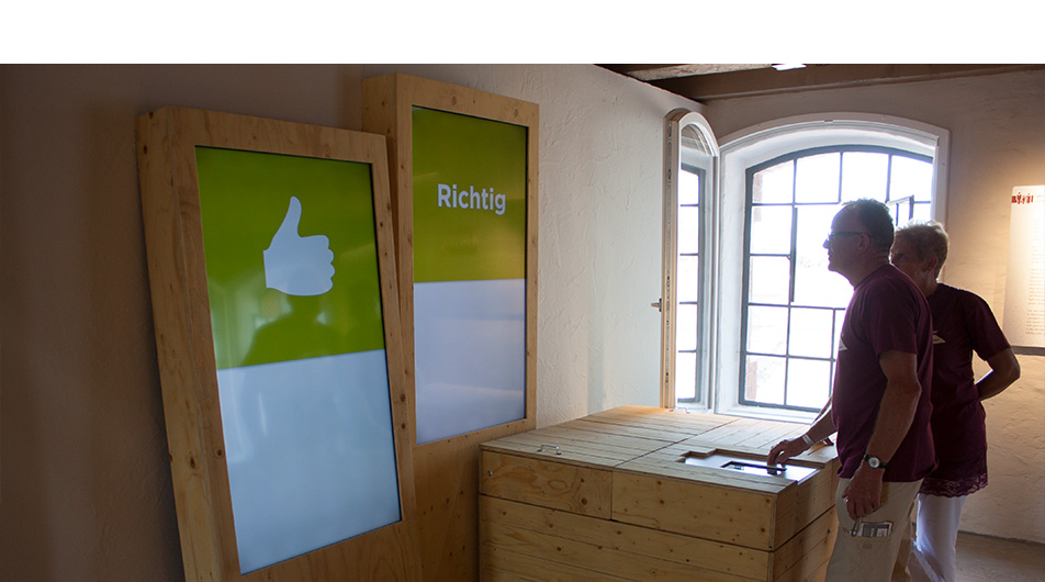 Freunde, Familie oder auch fremde Besucher können das Spiel mitverfolgen und bei Bedarf auch einen kleinen Tipp geben: so wird der Ausstellungsbesuch zum Gruppenerlebnis.