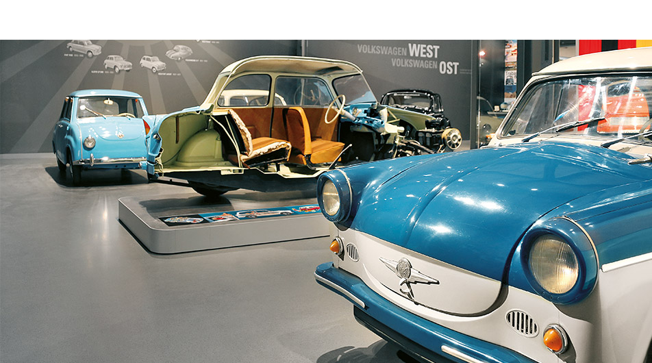 Auf Groß und Klein wartet eine informative und kurzweilige Ausstellung. In szenisch gestalteten Bereichen, wie der mit Liebe zum Detail eingerichteten Datsche der 1970er Jahre, wird der Besucher auf Zeitreise geschickt. Modernste multimediale Aktivstationen laden zum Mitmachen ein, bei einer Fahrt im Trabant-Simulator kann der Besucher in Erinnerungen schwelgen oder andernorts mittels Gestensteuerung einen schnöden Duroplast-Zweitakter virtuell mit Tuningteilen aufpeppen. Eine futuristische Präsentation der Marke Volkswagen schlägt die Brücke zum modernen Automobilbau.