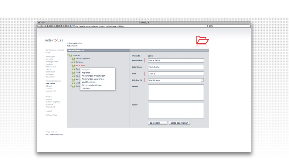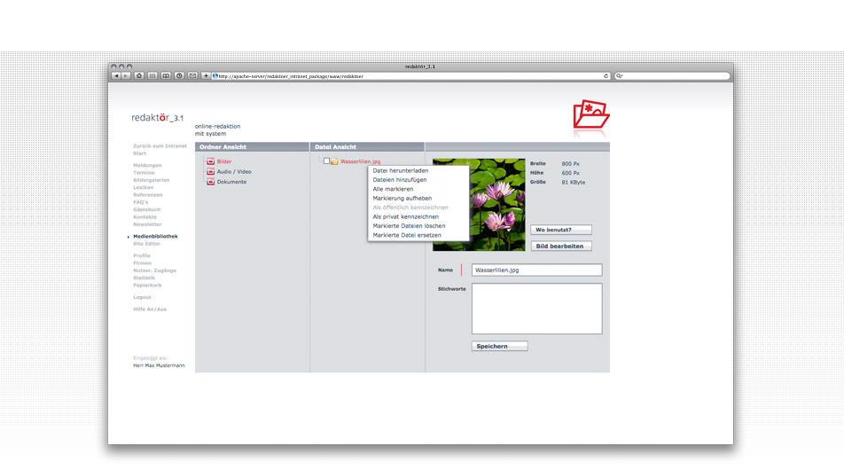 Details Content-Management mit System »redaktör«