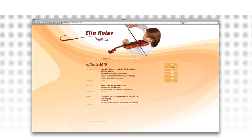Umgesetzt wurde eine zweisprachige Präsentation mit Content-Management-System. Hierdurch war es möglich das tagesaktuelle Geschehen im Rahmen seiner Auftritte (u.a. in der Carnegie Hall in New York) online zu verfolgen. Seit Beendigung seiner Konzertreise dient der Internetauftritt als Visitenkarte des Künstlers.