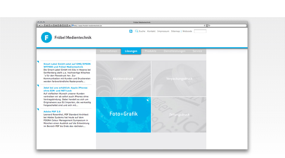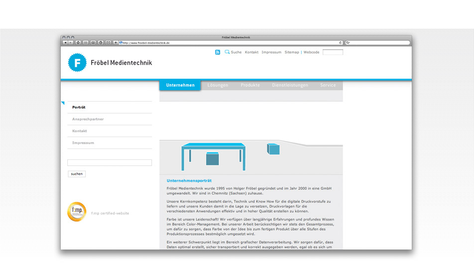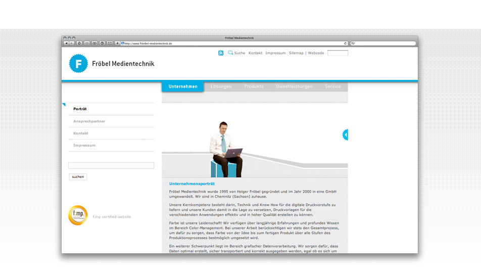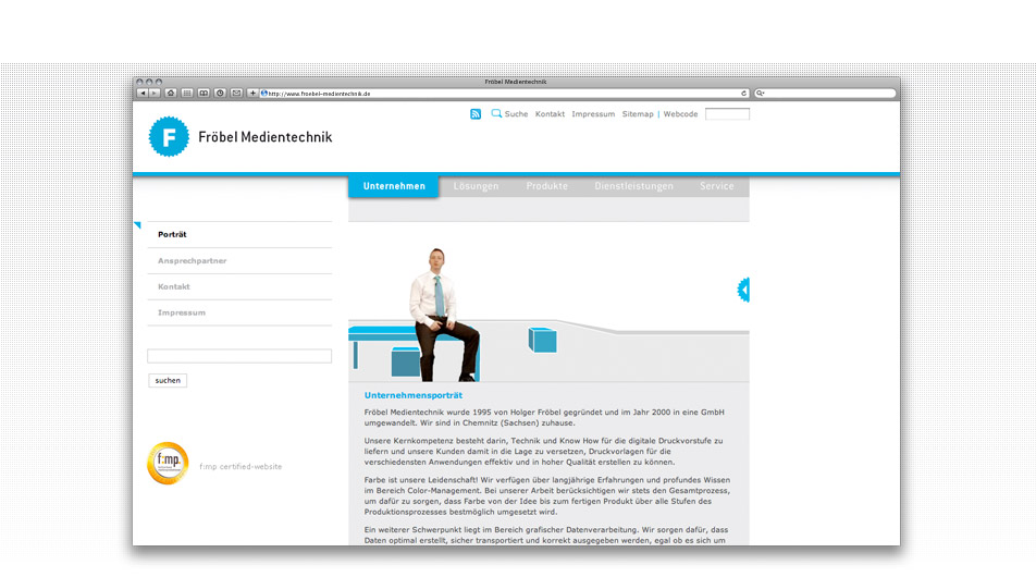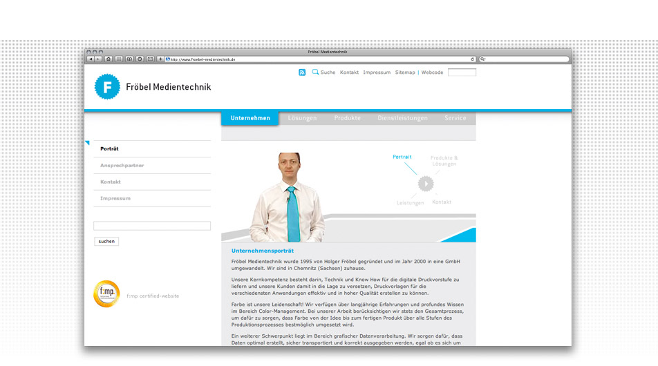 Neben der Präsentation des Medientechnik-Unternehmens wurde ein Informationspool rund um die Hauptgeschäftsfelder umgesetzt. Ein Content-Management- und Newslettersystem ermöglichen die schnelle Dateneingabe und deren Kommunikation zum potentiellen Kunden. Eyecatcher ist ein interaktiver Imagefilm, in dem der Geschäftsführer sein Unternehmen im virtuellen Raum persönlich vorstellt.