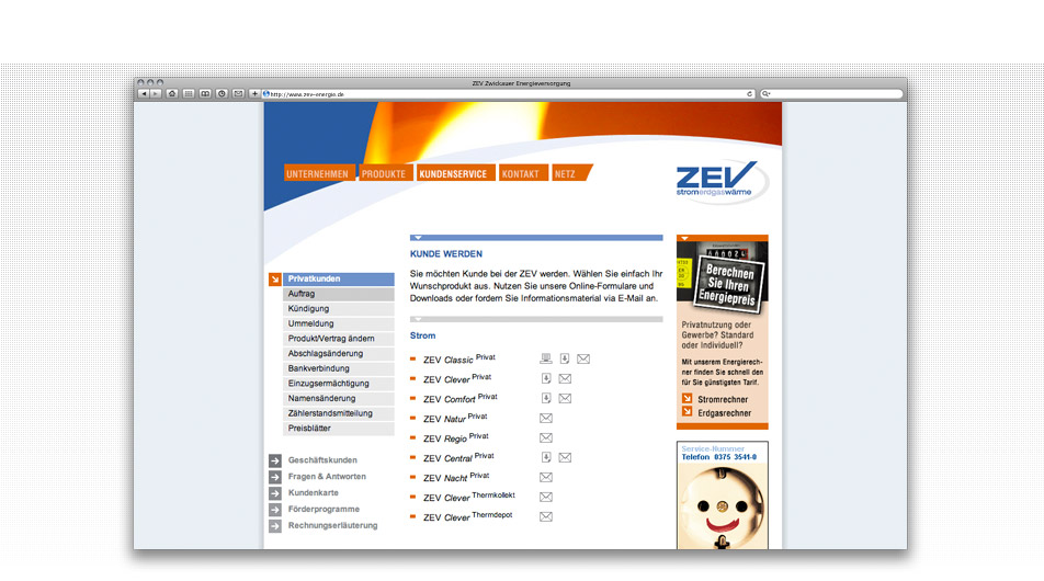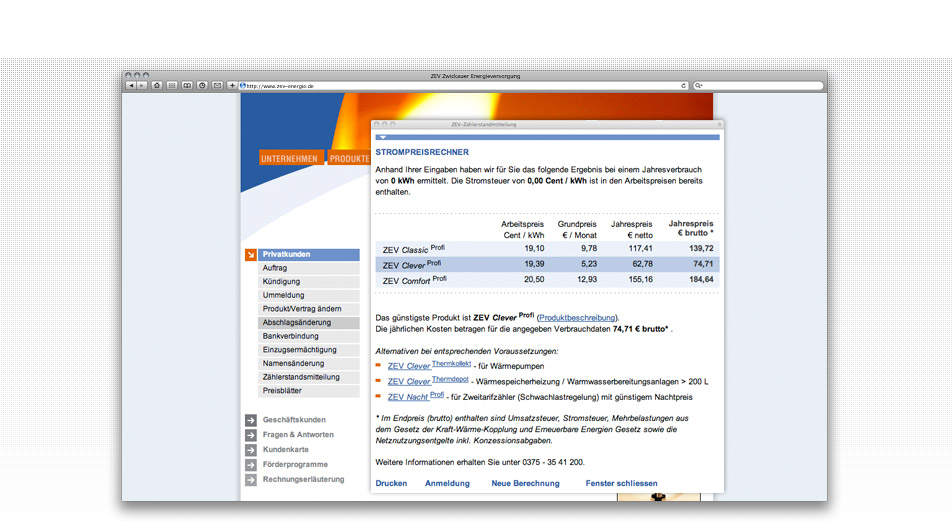 Die Entwicklung einer kundenorientierten Internetseite stand im Vordergrund des Website-Relaunches. Dabei galt es insbesondere die angebotenen Produkte im Bereich Strom und Erdgas online zu vermarkten.