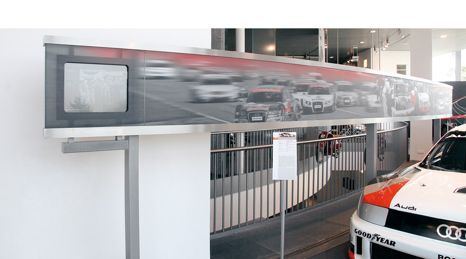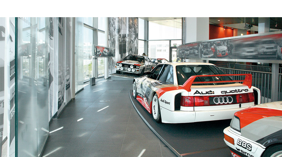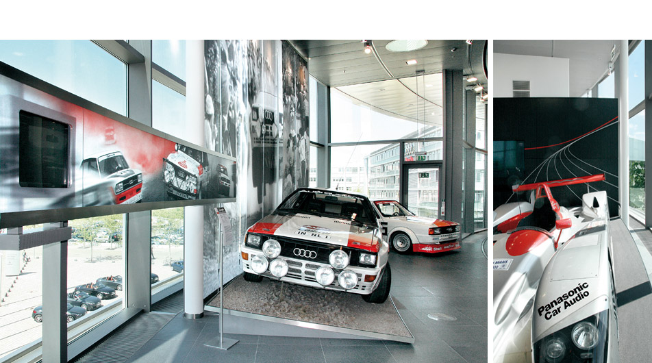 Redesign der Ausstellungsabschnitte »Rennsport der Auto Union« und Motorsport nach 1945 mit dem Schwerpunkt »Audi Motorsport nach 1980«. Die Bereiche sollen sich in die bestehende Stilistik einfügen und die Exponate besser, authentischer präsentieren.