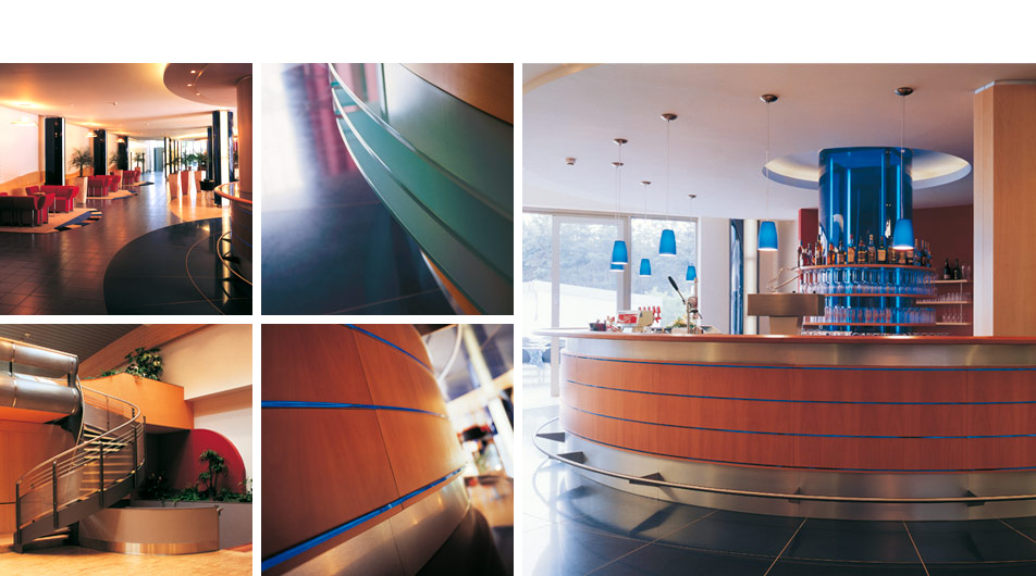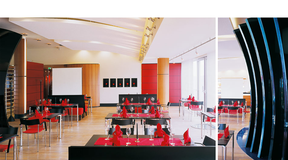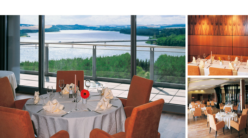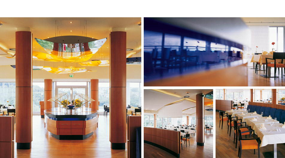 Umbau und Erweiterung eines typischen Beispiels der DDR-Ferienarchitektur, Plattenbau Ende der 70er Jahre des 20. Jahrhunderts, zum 4 Sterne Ferien- und Tagungshotel mit einer Kapazität von 300 Betten, Lobby mit Hallenbar, Bankettsaal, Panoramageschoss mit Küchen- und Restaurantbereich, Konferenz- und Tagungsräumen, Kaminzimmer, Sport-Wellness-Bereich sowie Nachtbar. Anliegen der Architektur und Innenarchitektur war die Übersetzung der reizvollen Landschaft in eine organische Formensprache. Dazu wurden im Rahmen des vorhandenen Plattenbaus optimal mögliche Funktionsstrukturen geschaffen. Die enge Verbindung zur Architektur und Thematisierung der Lage am See bildeten dabei die Grundlage für individuelle Möbelentwürfe, ein erlebnisorientiertes Material- und Farbkonzept für alle Funktionsbereiche des Hauses.