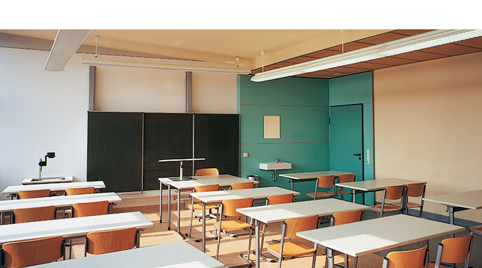 Umbau und Neugestaltung von Klassenräumen, Fachkabinetten, Werkstätten, Fluren, Treppenhäusern, Pausenzonen, WC-Anlagen etc.
