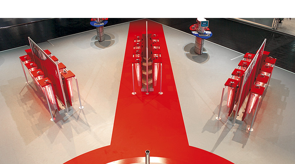 Messestände unterschiedlicher Größe zwischen 200 bis über 300 qm in ein- und zweigeschossiger Bauweise wurden umgesetzt. Budgetvorgaben bestimmten die jeweilige Planung. Durch die längerfristige Zusammenarbeit können die funktionellen Anforderungen des Kunden immer besser erfüllt sowie ein reibungsloser Ablauf zwischen Vertrieb und Event gewährleistet werden.